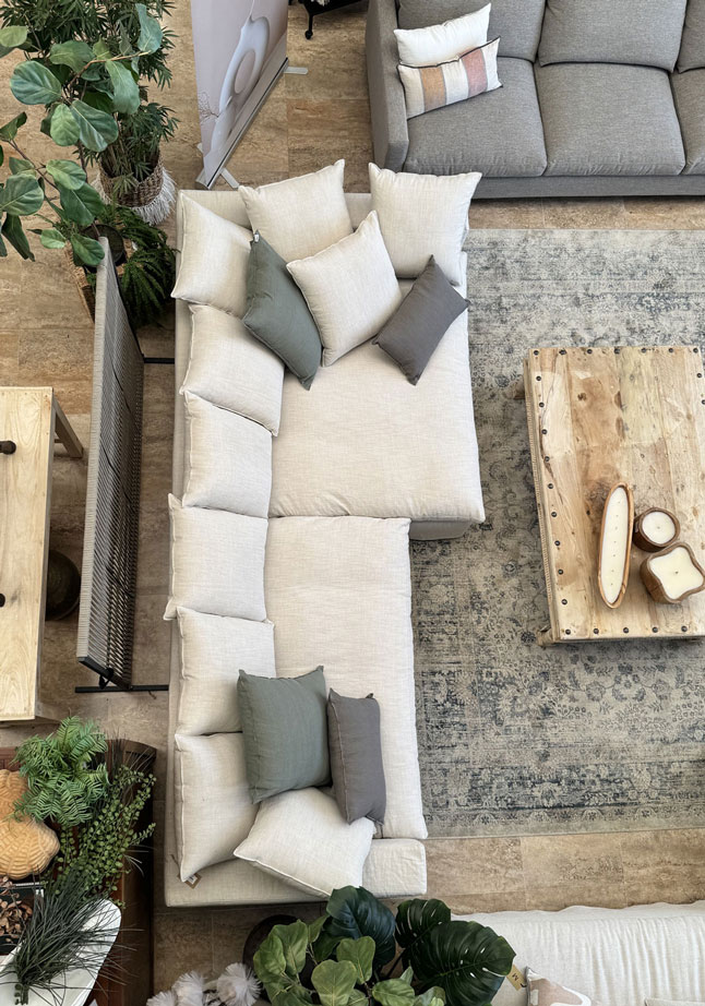 Nuestra colección de sofás cuenta con tejidos 100% naturales, respetando el bienestar animal y el compromiso con el medioambiente.